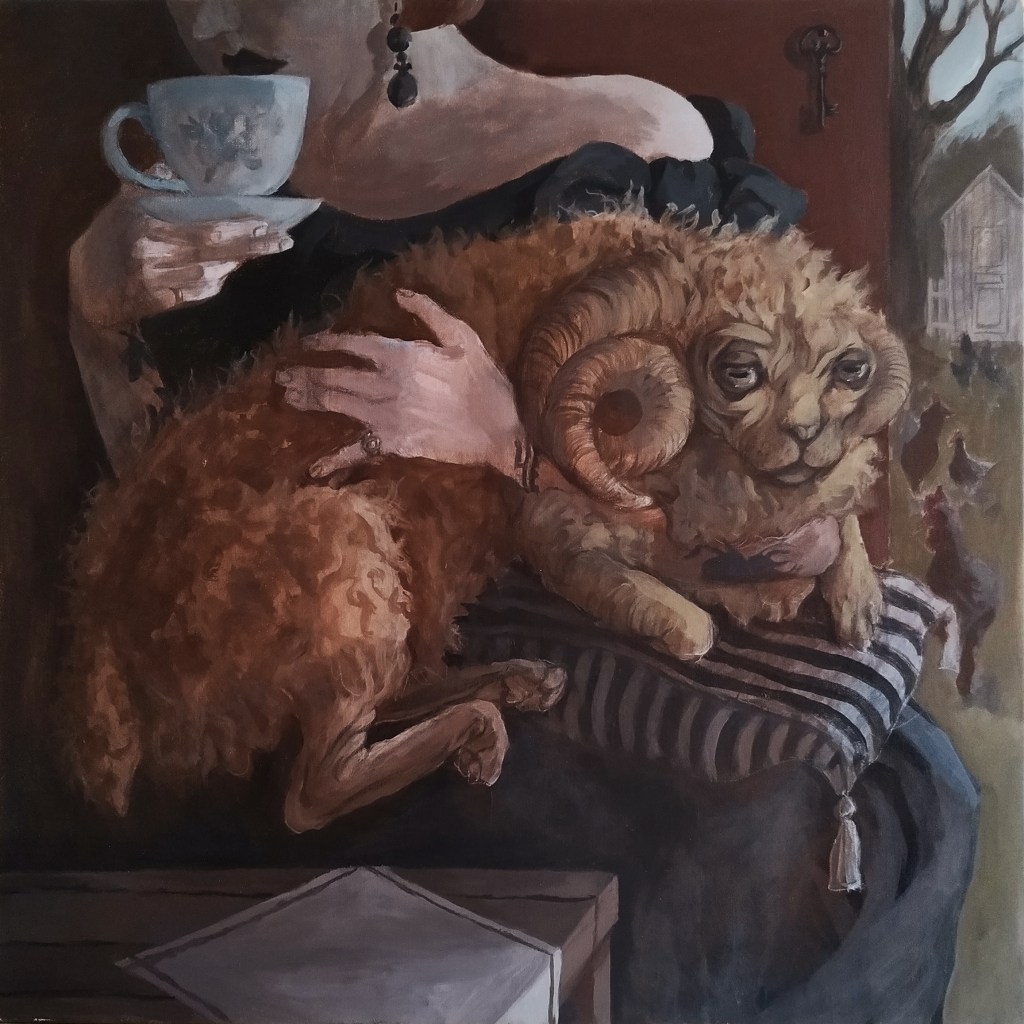 Zwierzę jest hybrydą królika i kozy: ma dwie głowy i cztery przednie łapy. Łączy w sobie napięcie pomiędzy odwagą a płochliwością i przebojowością a chęcią ucieczki. Dla artystki to właśnie te dwa gatunki są najbliższe. Potwór staje się odbiciem jej własnej osobowości. Gdyby odziedziczyła jakieś zwierzę, wyglądałoby ono właśnie tak. Jakbyśmy się czuli, współdzieląc codzienność z taką hybrydą? Jak wyglądałoby nasze odziedziczone zwierzę?