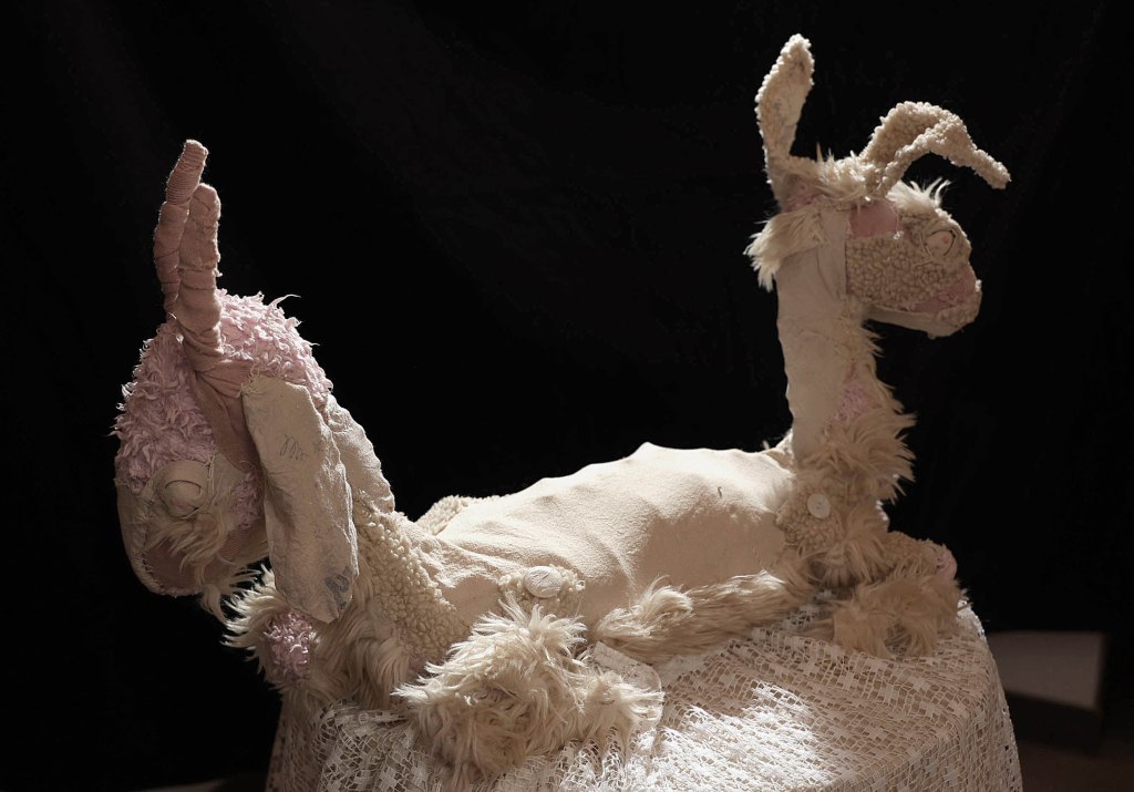 The animal is a hybrid of a rabbit and a goat: it has two heads and four front legs. It combines a tension between courage and skittishness, boldness and the urge to flee. For the artist, these two species feel closest. The Monster becomes a reflection of her own personality. If she were to inherit an animal, it would look like this. How would we feel sharing our everyday life with such a hybrid? What would our inherited animal look like?