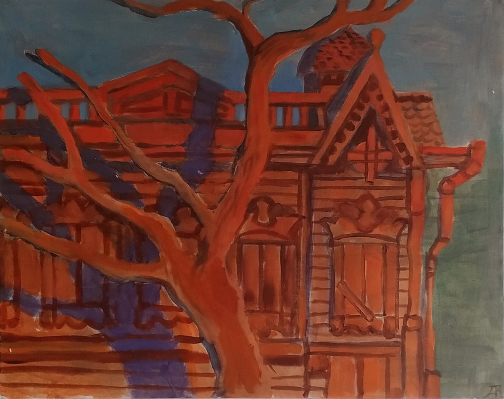 Na obrazie dom jest wspomnieniem – cieniem tradycyjnej drewnianej architektury rodzinnego miasta artystki, miejsca, które stopniowo znika. Domów, których jest coraz mniej: wypieranych przez nowe inwestycje, nielegalnie podpalanych przez deweloperów, zamienianych w centra handlowe, poddające się nowym projektom urbanistycznym.